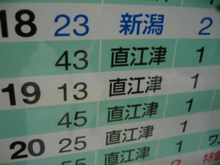 快速に乗車し、北陸新幹線の停車駅の上越妙高駅を目指します、17:54着です。