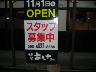 迷子になっている間に、たまたま偶然11月1日オープンの新しい麺屋さんを見つけました。