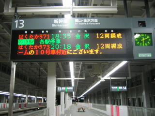 金沢駅16:09のはくたか570号で帰ります、上越妙高駅は17:12分着です。