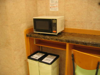 1階の食堂ホールの片隅に電子レンジあります。