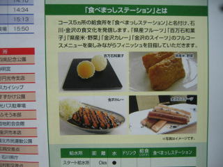 パンフ2番目の「たべまっしステーション」、18.1キロの「百万石和菓子スポット」、「きんつば」が楽しみです。