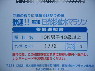 平成19年8月 日光市の「第2回日光杉並木マラソン大会」の10キロに参加しました。