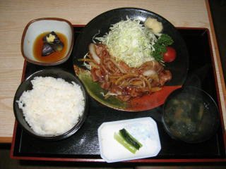 途中、いつものように「越後もち豚しょうが焼き定食」750円です。