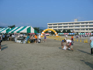 10分ほどで会場の東原中学校に到着、10キロの受付を済ませます。