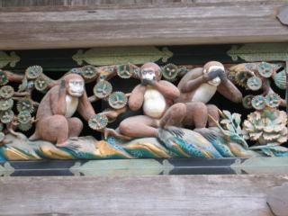 その後、東照宮へ行き、「見ざる聞かざる言わざる」、「眠り猫」を見学しました。