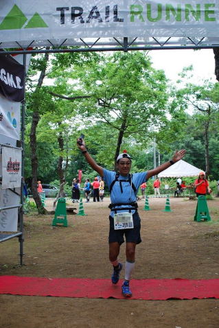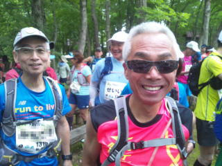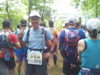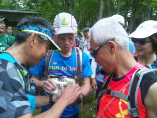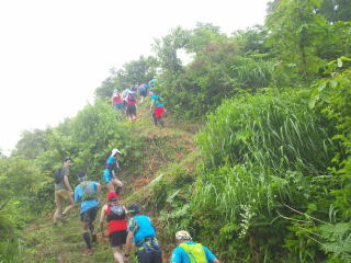 急坂はロープにつかまって登り、またすれ違うランナーと声を掛け合いながら、そして道を譲り合いながら何とか頂上へ到着です。