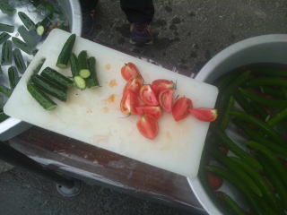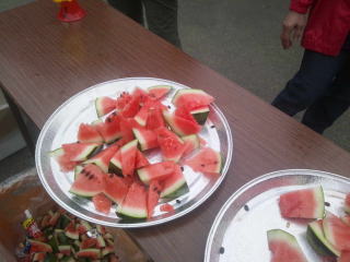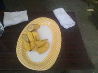 振舞いはバナナ、きゅうり、トマト、お水もたっぷりです。