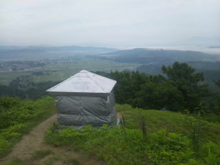 かなり細い尾根を通って、午前7時38分(1時間38分後)、城山頂上です。