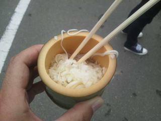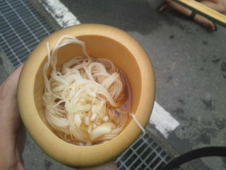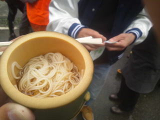 大会HPのビデオで見た通りの、涼しそうな流しそうめんです。