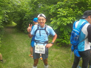 2枚目、5キロ先のSA1法末エイド付近、まだまだ元気。