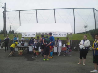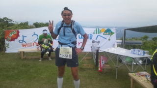 左手に持っている青い布はゴール時にいただいた完走賞ですが、いったい何なのか、どう使うのか全く不明です。
