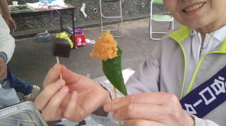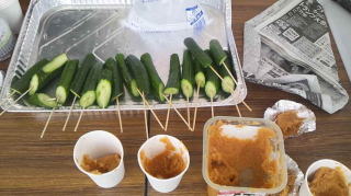 小千谷ロータリークラブのおばちゃんがきゅうりと羊かんを手渡してくれましたが、笑いながら「アップはダメよ」とのことでした。