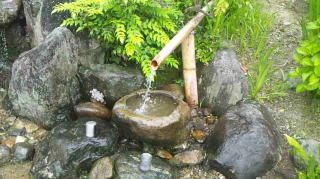 お水は竹のカップに入って手渡されました、ありがとうございます、ここでも携帯カップの出番はありません。
