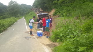 午後12時7分、右へ曲がる角、山へ入る手前だったように思います、こちらも私設エイドでしょうか?地図に載っていない地元住民設営のエイドの様です。