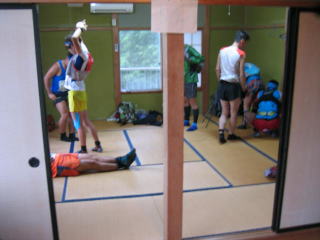 2階の和室が2.5キロ、15キロ、53キロと分けてあり空いてます、2.5キロ、15キロはスタート時間が遅いのでだれもいません。