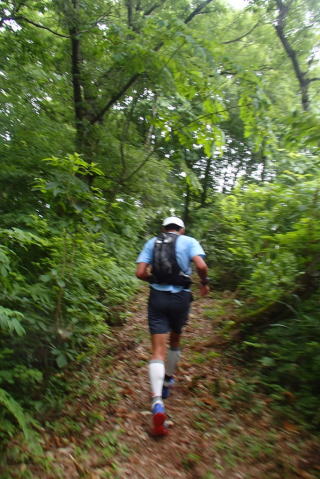 ここでも激しいアップダウンで短パンのポケットから携帯カップが飛び出し、後続のランナーが拾ってくれました、ありがとうございました。