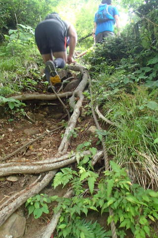 後半の一番の難所八石山の登り、ロープを使わないと登れません。