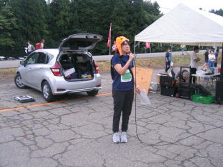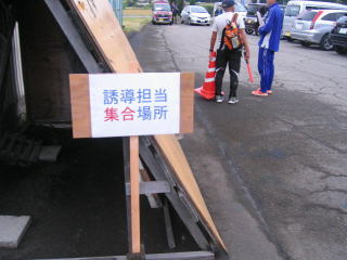 車に3人のボランティア誘導員を乗せ、各自の誘導ポイントで降ろし、最後に自分も配置につきます。