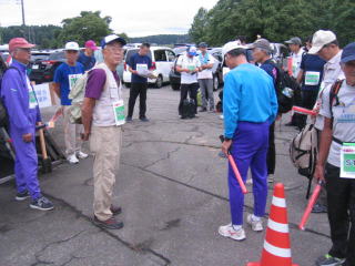 説明を聞いて、不明な点は質問し、誘導棒とレッドコーンを受取り、準備万端です。