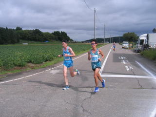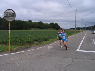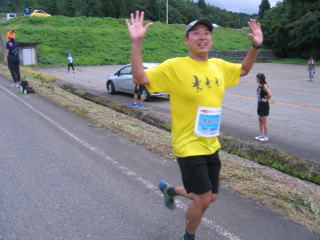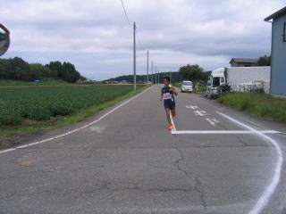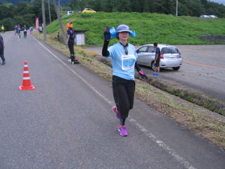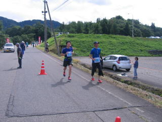 写真はありませんが、ピンクのナンバーカードの12キロが先にゴールしました。