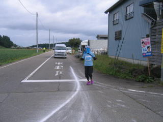 車両を止めることに、ランナーに右折をアピールすることに必死で、写真など撮ってる余裕は全くありません、真にテンパっています。
