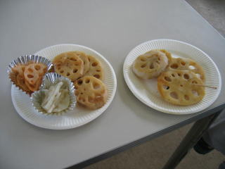 「レンコン揚げ」、写真はありませんが「油あげ」と「大手饅頭?」をいただいて帰りました。
