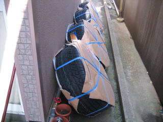 昼休みのマラソンから帰ってくると梱包された大きなタイヤが4本届いていました。