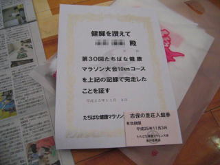 今年は名前が入って、当然スタートしてませんから記録が空欄の完走証です。