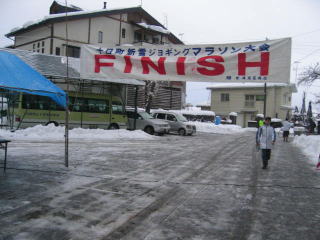 路面はシャーベット状の圧雪があり走りにくいところもありましたが、大会役員さんの努力で、この降雪地でハーフ完走です。