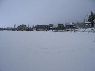 着替えてウォーミングアップに出かけますが、雪が降ってきました。