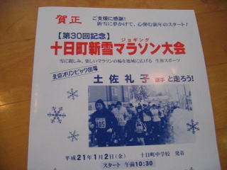 平成21年1月2日 十日町市の「第30回十日町新雪ジョギングマラソン大会」のハーフに参加しました。