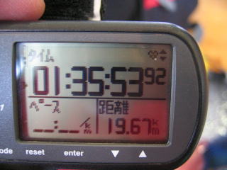 ミゾレ、雪、曇りの中、1時間35分後に無事ゴールしました。