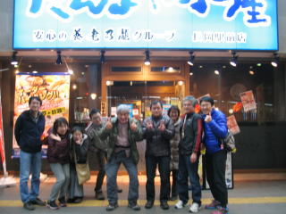 平成31年2月24日(日) 「平成31年南部体育館新年会」を開催しました。 今年は雪が少なく、最近できた「東京インテリア」さんまで、午後3時過ぎから約10キロを走ってきました。 今日も良い天気でこの時期にしてはとても暖かい、17時23分のバスで出かけます、バスも2〜3分の遅れできました。 「だんまや水産」さん、日曜日のみ2時間30分の「飲み放題食べ放題」3.500円税込の得々バイキングです。 参加のメンバーはこの9人です。