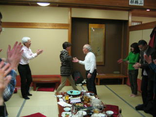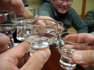 午後4時15分頃から懇親会開始、まずは「日本酒で乾杯!」です。