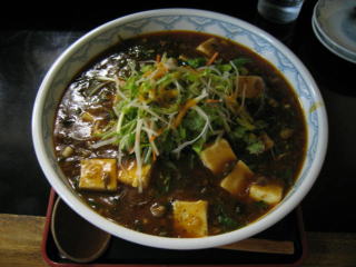 新メニューの「焼海老つけ麺」と迷いましたが、つけ麺はもっと暑くなってから、ってことで「麻婆麺」特盛にしました。