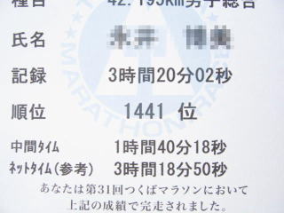 平成23年11月27日 茨城県の「第31回つくばマラソン大会」のフルマラソンに参加しました。