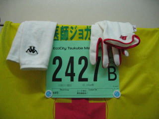 事前にナンバーカード、計測チップ、参加賞のグローブなどが送られてきました。