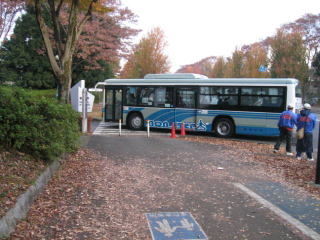たくさんのランナーを乗せたマラソンシャトルバスが何台も到着します。