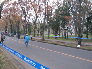 11キロ辺りで左折すると、車は進入規制され、走路が広がり、またランナーもバラけてマイペースで走れます。