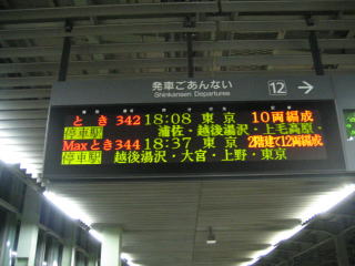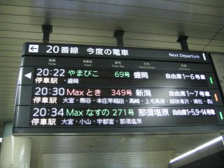 出発時に往復切符を買っていたので、東京駅ではなく上野駅発20時30分のMAXときで帰ります。