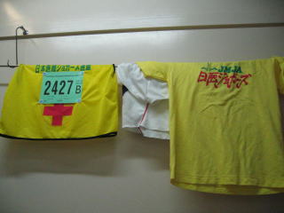 ランシャツにナンバーカードを付け始めますが、ここじゃダメです、ビブスに付け直します。