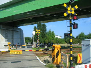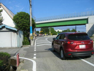 行けるところまで車で行きました、大きな道路は高架になっていて、鉄道は踏切があります。