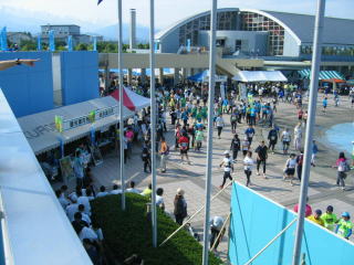 親水空間(アクアパーク)脇を歩いて受付会場到着です。
