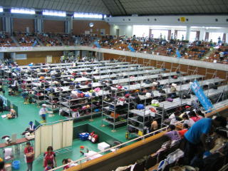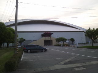長岡ICから黒部ICまで高速できました、午後6時ちょっと前に受付会場の黒部市総合体育センターにつきました。