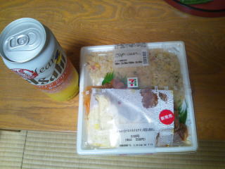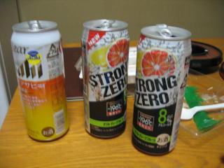 宿に電子レンジがあるか不明なので、まずはお酒だけにしました、トイレ対策でとても控え目に3本です。