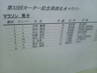 フルマラソン優勝は川内優輝選手です。
