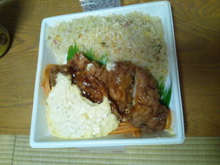 お弁当1個目、炒飯が多くカーボのつもり。