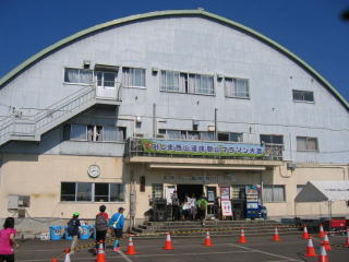 歩いて5分もかからず、受付会場の三島体育センターです。