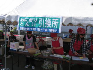 地元のお母さん方がとん汁などの用意をしています。