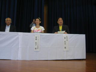 壇上には森長岡市長とゲストランナーの有森裕子さんです。